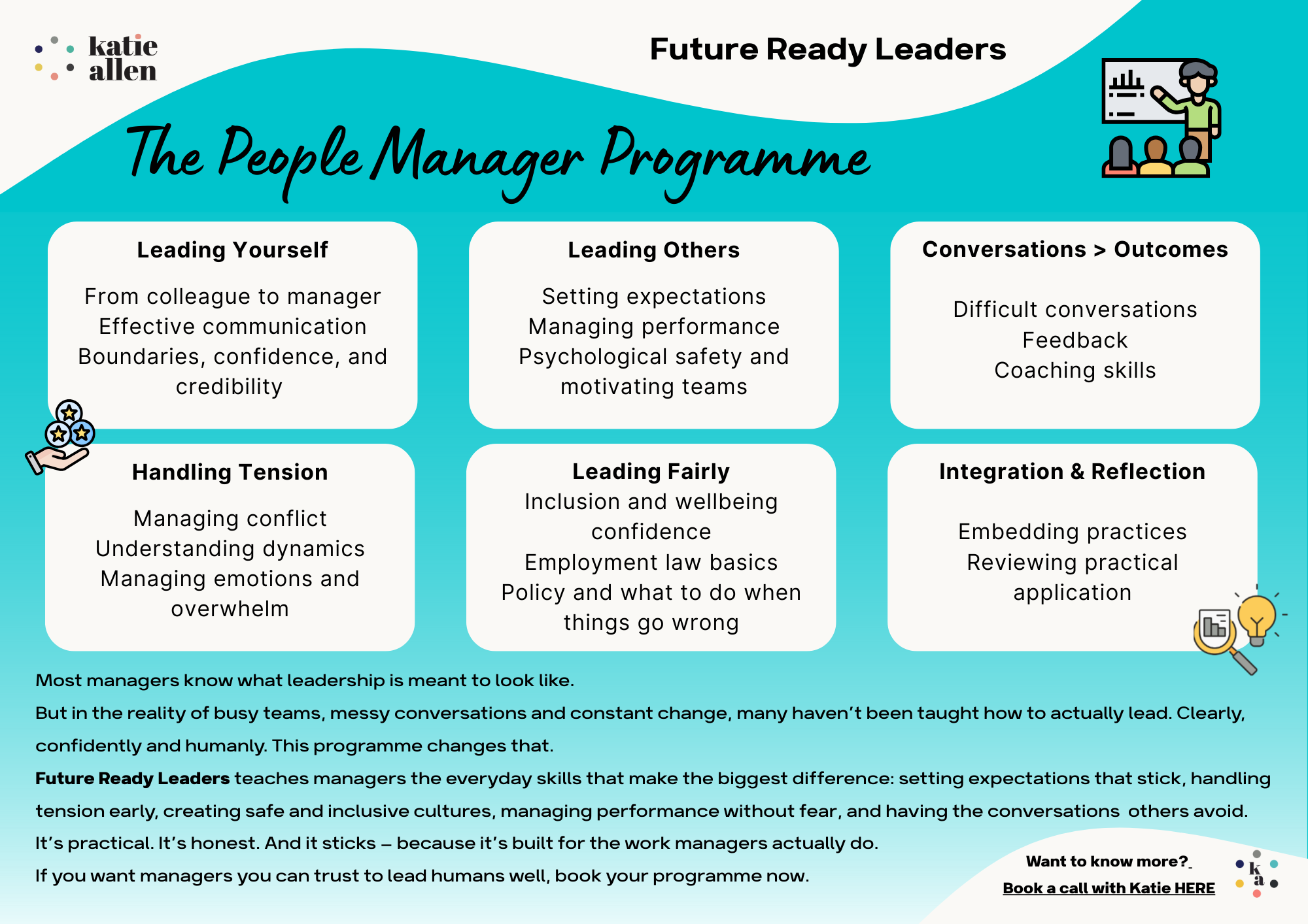 Focus on clarity, honest communication, confident problem-solving and everyday behaviours that build trust, inclusion and performance. This is how leadership makes a measurable difference.